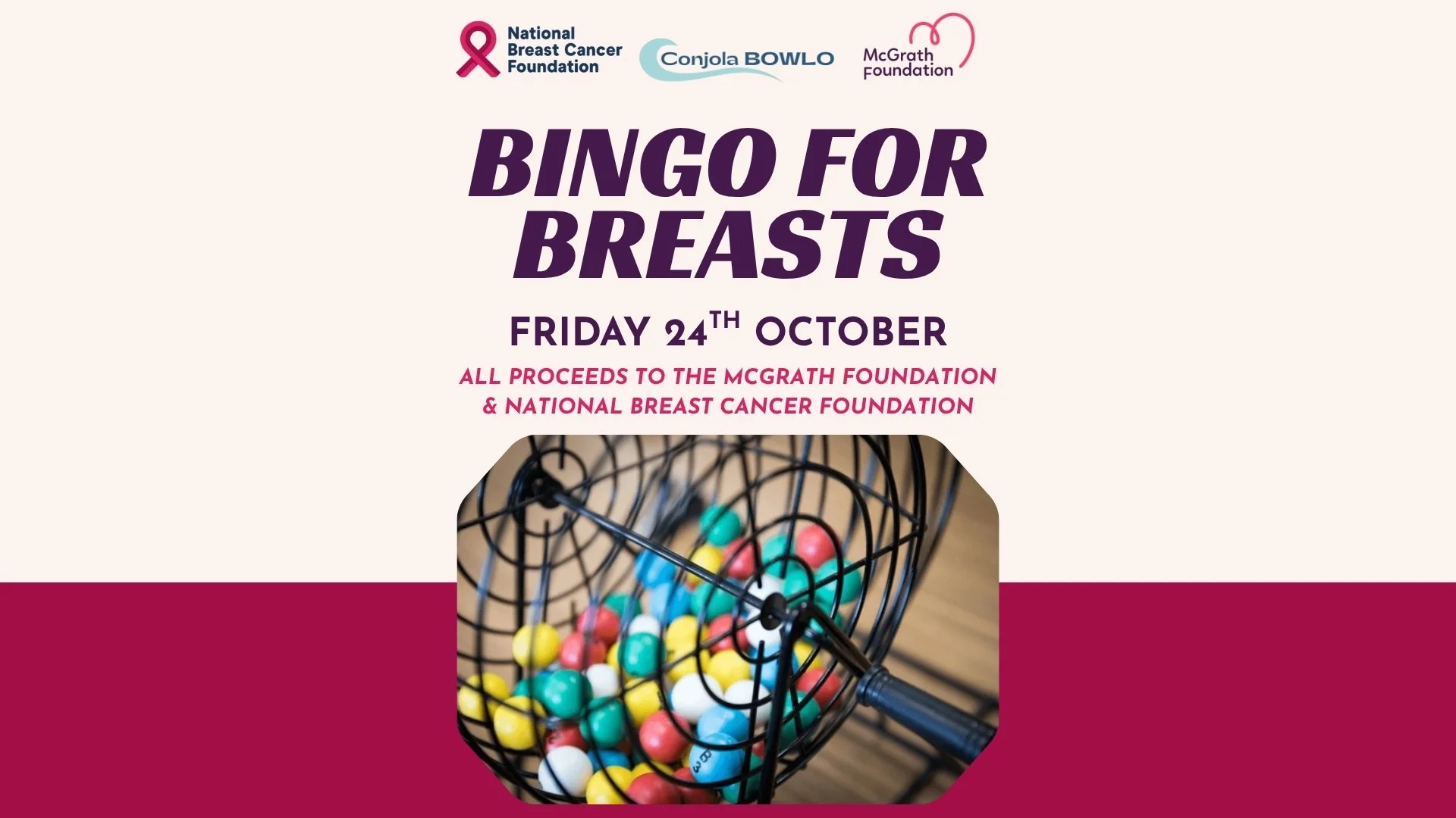 Join us on Friday 24th October for a fun-filled afternoon in support of the McGrath Foundation and the National Breast Cancer Foundation. Books will be on sale from 11am, and eyes down at 1pm to start playing!