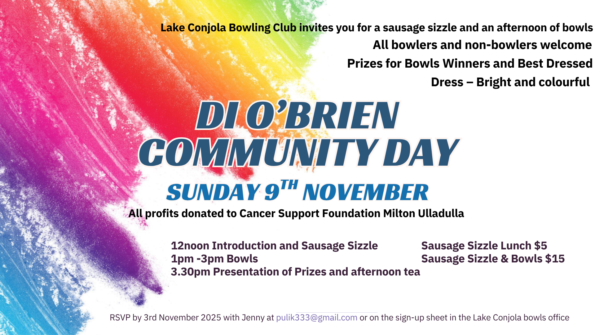 Join us for a relaxed and colourful afternoon celebrating our wonderful community! Whether you’re a regular on the greens or have never bowled before, everyone is welcome to come along for some friendly fun.
